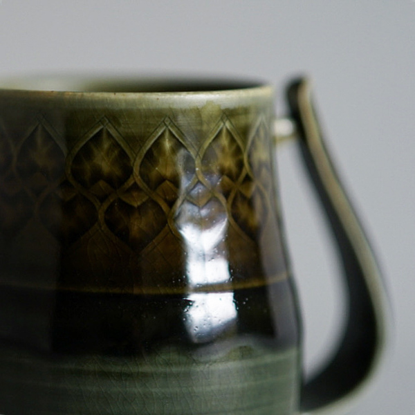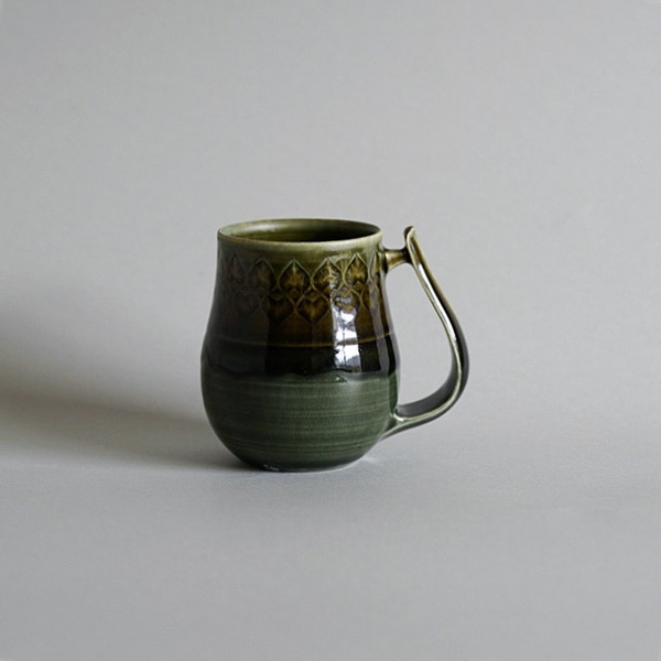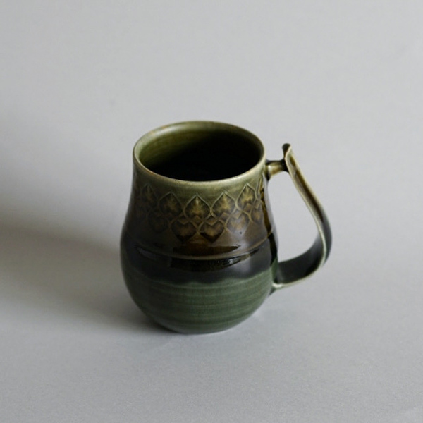 宮崎で制作されている増渕篤宥さんの青釉釉象嵌掛分けマグカップです。