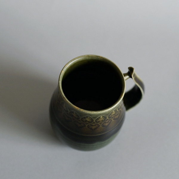 2色の釉薬が掛け分けられてあり、上部には美しい彫模様が施されています。