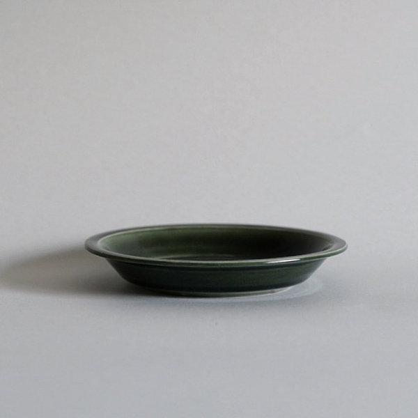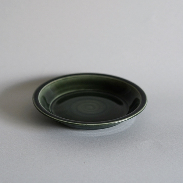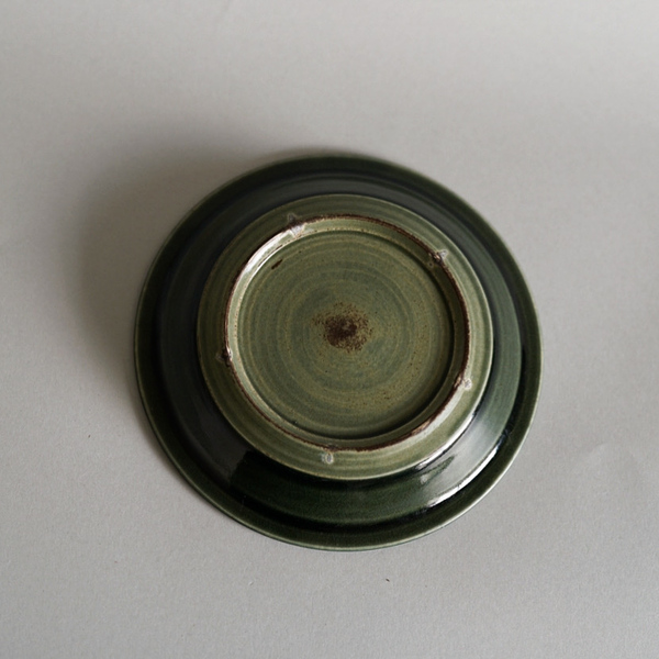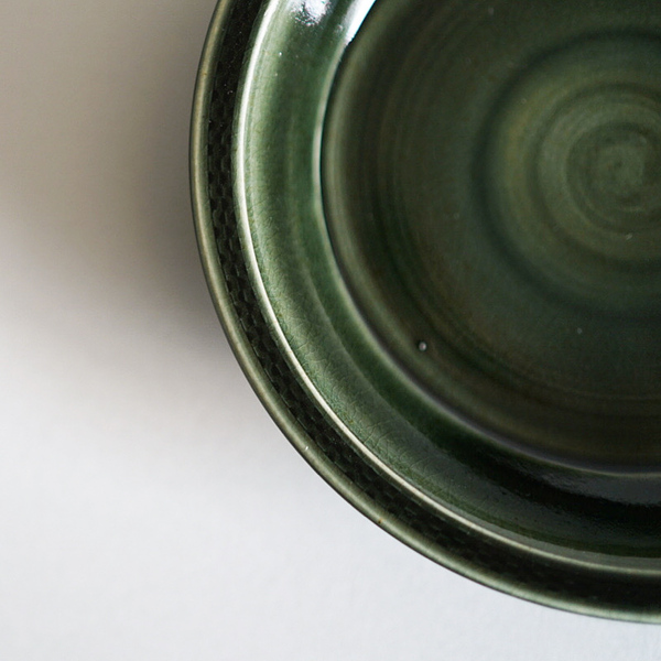 深みのある青緑。細いリムには細かな彫り模様が施されています。さりげない品の良さを感じる作品です。