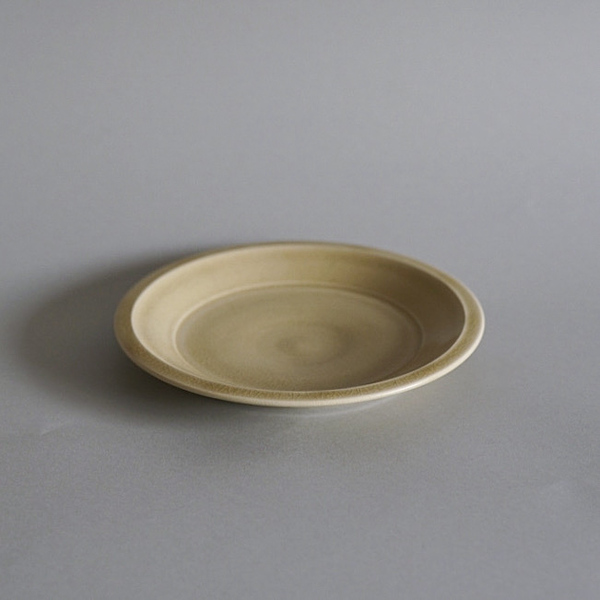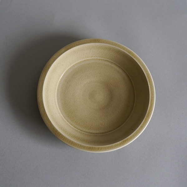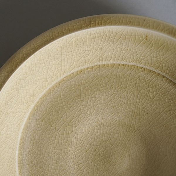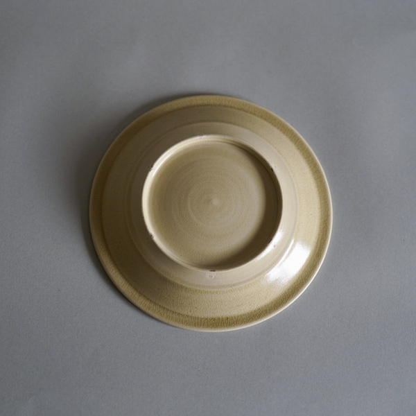 あたたかみのある淡い黄色。全体には細かな貫入が入り、ところどころ釉が溜まって濃淡の変化が見られます。そのわずかな表情の違いが、静かなニュアンスを生み出しています。