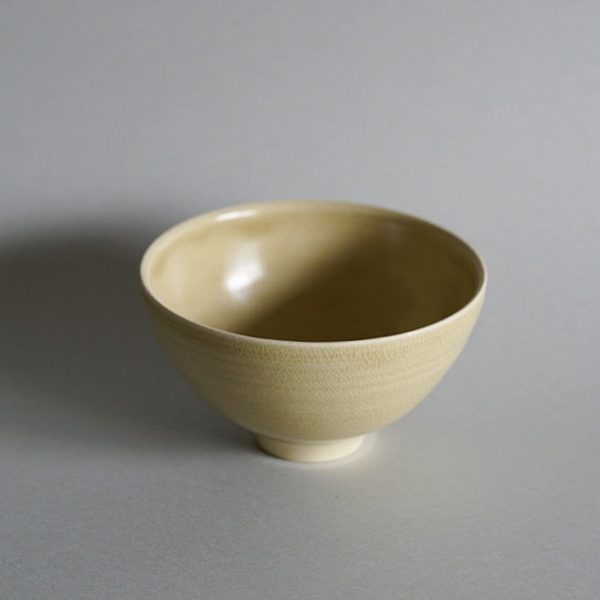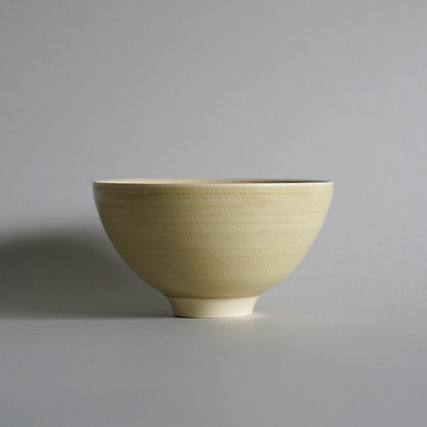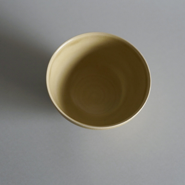 あたたかみのある淡い黄色。全体には細かな貫入が入り、ところどころ釉が溜まって濃淡の変化が見られます。そのわずかな表情の違いが、静かなニュアンスを生み出しています。 増渕さんの器といえば、繊細な彫り模様を施したものが印象的ですが、 こちらはあえて装飾を排し、造形そのものの美しさを際立たせたシリーズ。 新たに始まったこのラインには、軽やかでありながらも深みのある魅力が感じられます。 ご家庭だけでなく、カフェなど飲食店でのご使用にもおすすめいたします。