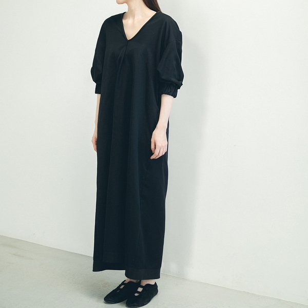 着心地の良い上質な日常着を提案するhumoresqueのパフスリーブVネックドレスです。