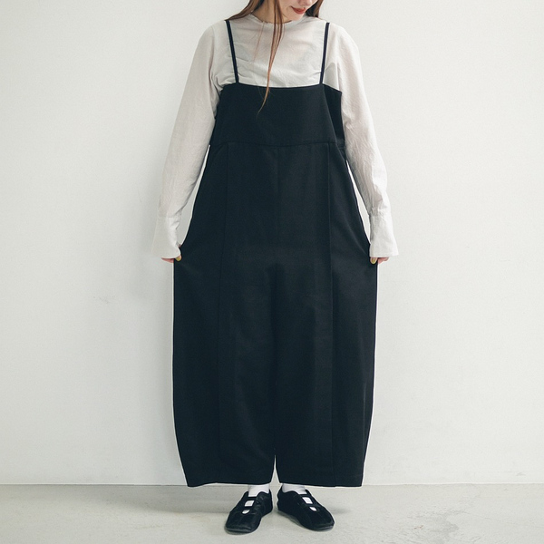 着心地の良い上質な日常着を提案するhumoresque(ユーモレスク)のバルーンサロペット(黒)です。