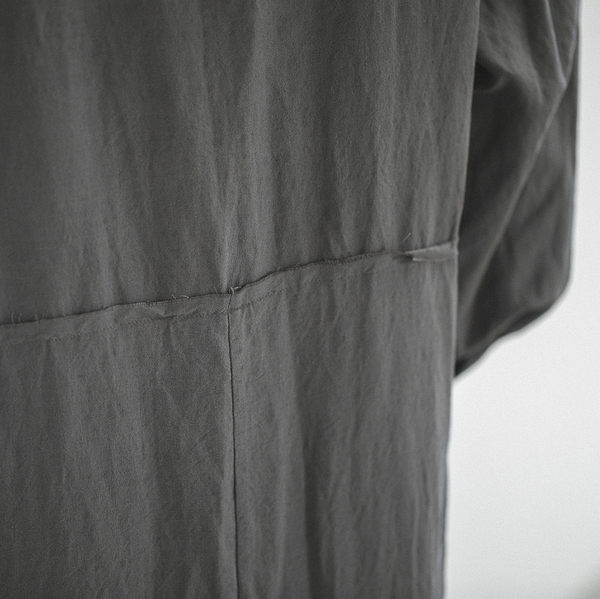 リネンの表情を生かしながら絹のやわらかさを引き立てるため、酵素を使った洗い加工で仕上げた生地。絹本来の上質な光沢と、風になびくような軽やかさをあわせ持ちます。